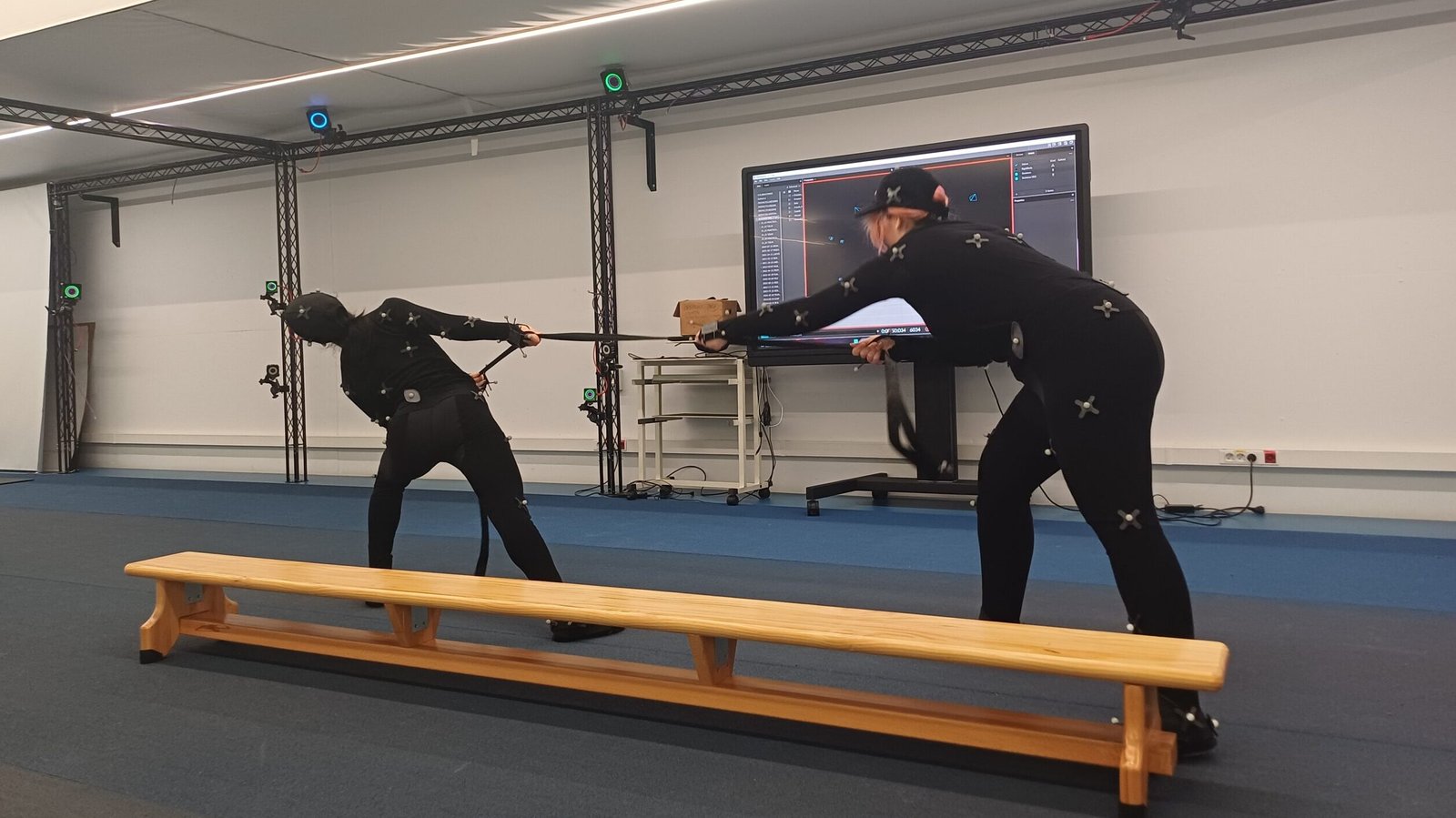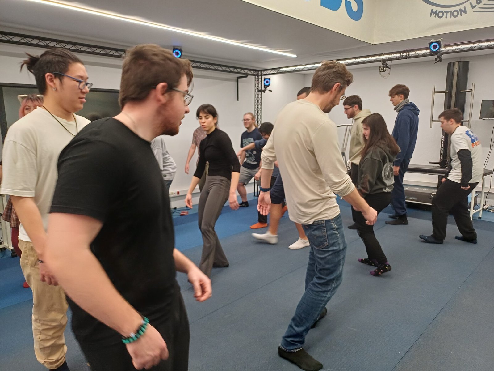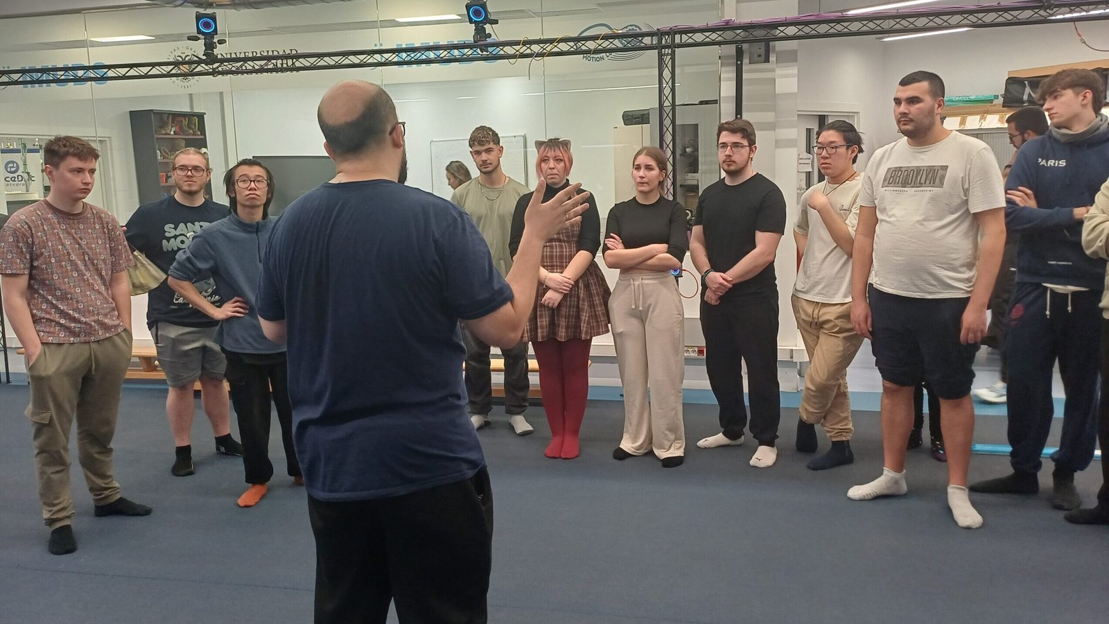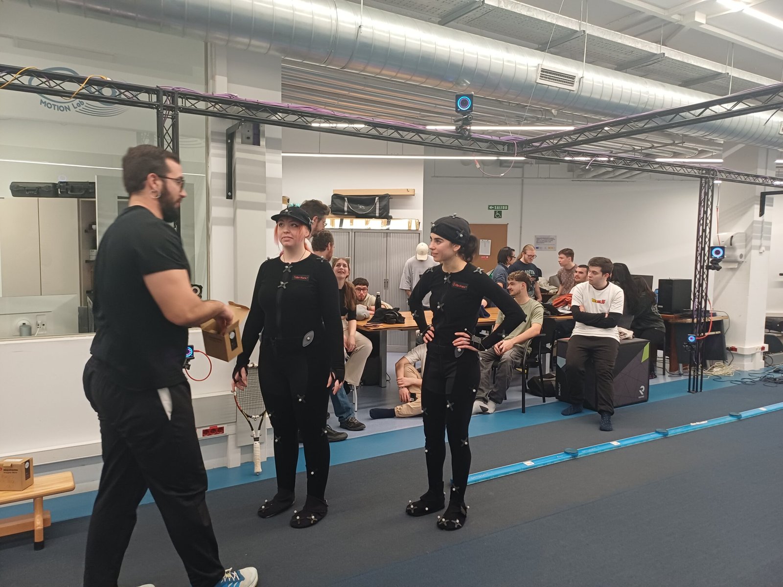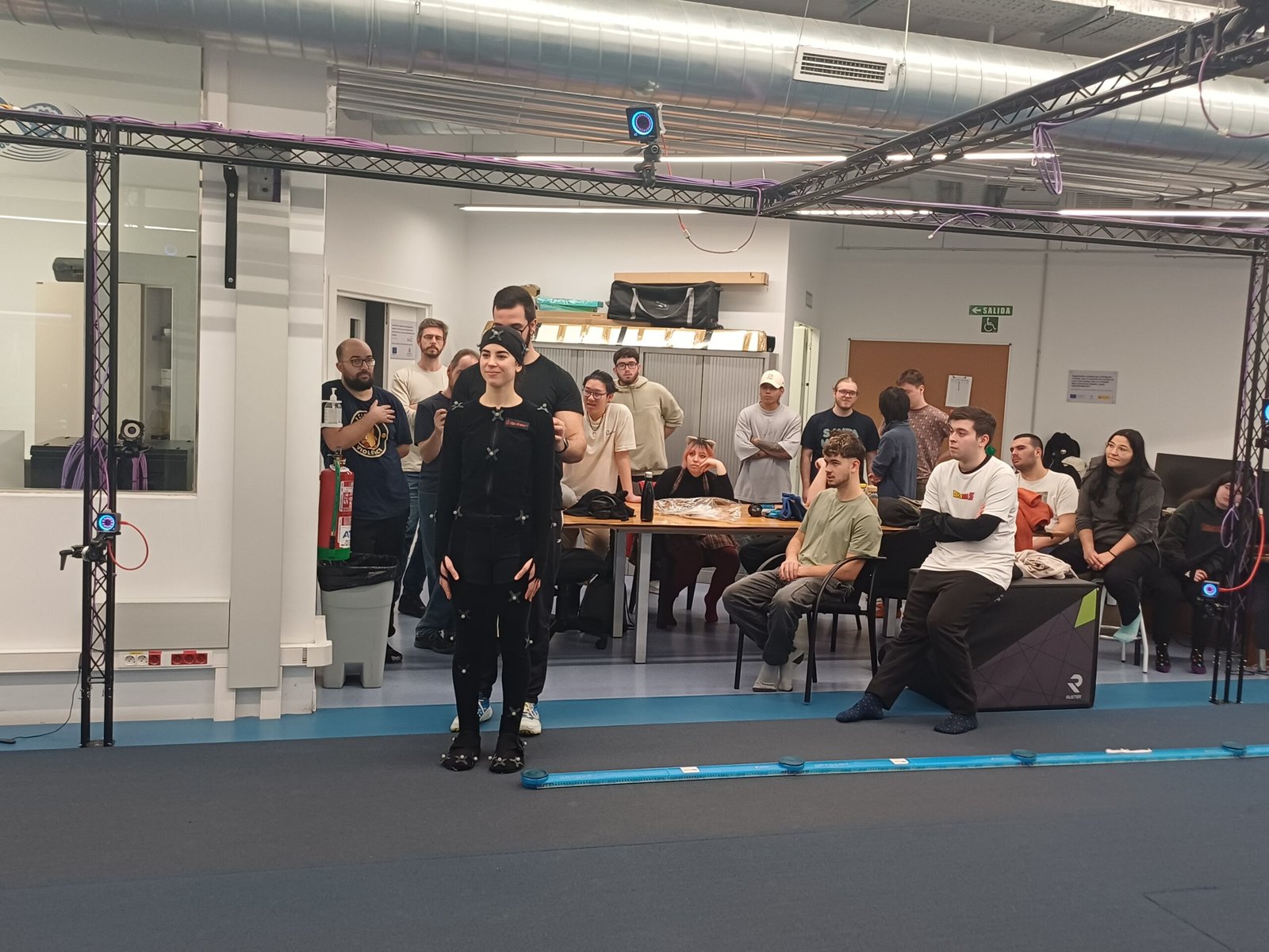 Tras el bloque de actuación, el taller continuó en el set de captura de movimiento del Motion Lab, donde el alumnado pudo conocer todo el proceso de motion capture, desde la calibración del espacio hasta la captura de movimientos reales.